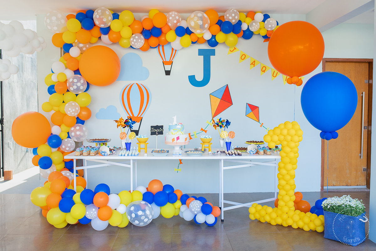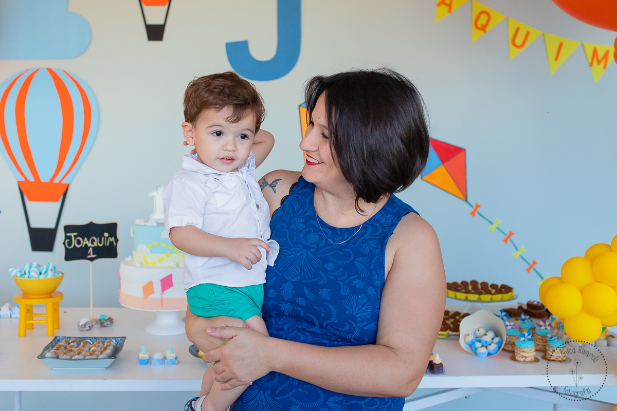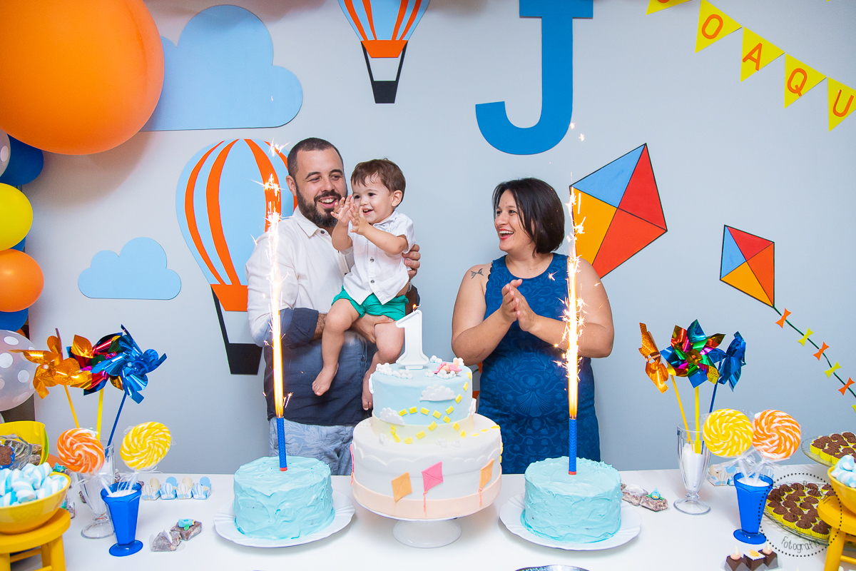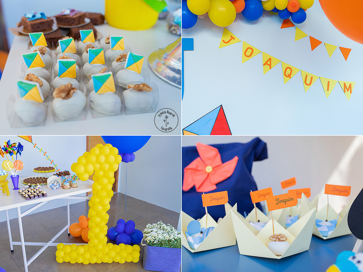O tema da sua festinha era brinquedos, tinha cata-vento, pipa e muitos balões. O Joaquim aproveitou cada segundinho da sua festinha preparada com muito carinho pelo papai e a mamãe ♥